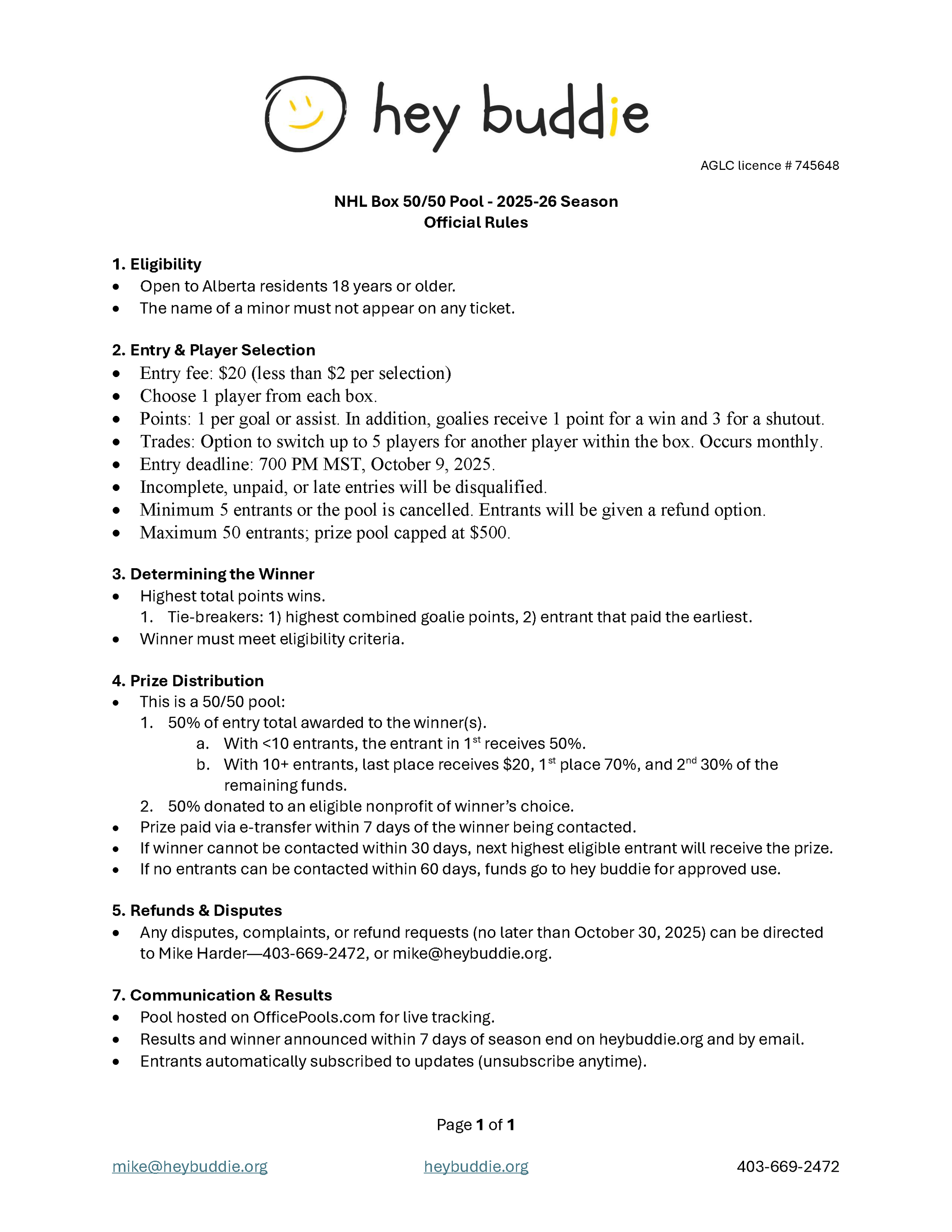 NHL Box Pool 2025-26 Season Rules